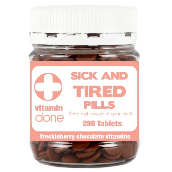 Every ailment known to woman is covered in our range of chocolate tablets. Eat your problems away!! No dietary benefits but packed full of love! Contains milk chocolate coverture pastilles.